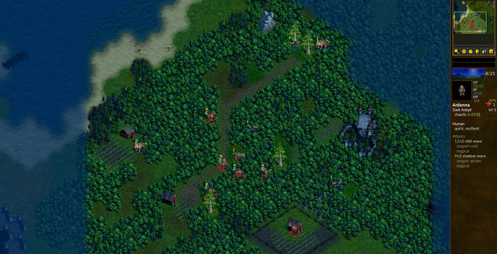 Questo titolo è stato creato nel lontano 2003 e da allora ha ricevuto aggiornamenti frequenti sia dai suoi creatori che dai numerosi giocatori (la versione attuale infatti è la 1.14.16), con conseguenti miglioramenti grafici e nuove campagne incluse nella versione base. Come potete vedere, è un gioco di strategia con visuale dall’alto come Fire Emblem, con i personaggi che vengono spostati di turno in turno su un campo di battaglia a griglia (esagonale, in questo caso) ricco di elementi di scena che modificano il movimento e la difesa delle unità.
