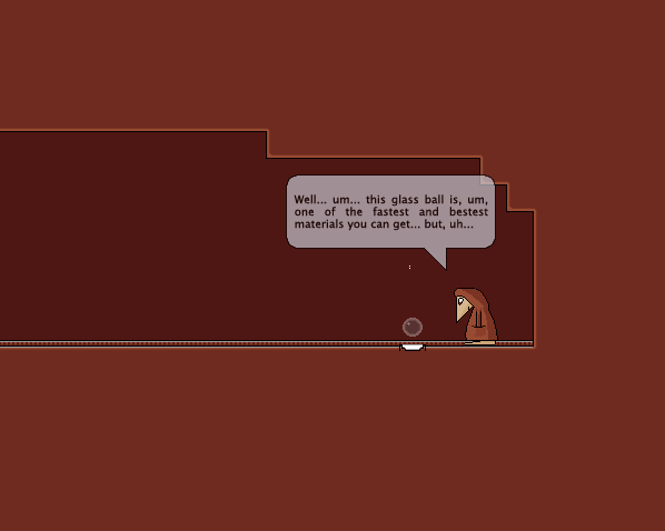 Destra e sinistra per muoversi, S per aumentare il rimbalzo, A per diminuirlo, Esc per tornare all'ultimo punto di salvataggio e i numeri (o il mouse) per scegliere il materiale della palla.