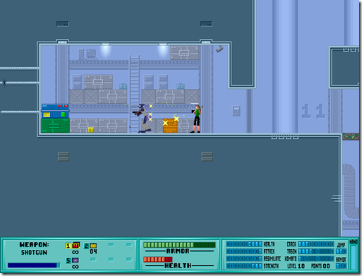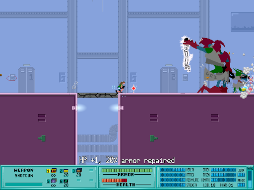 Uccidendo i nemici o ricorrendo ad altri mezzi, avremo la possibilità di guadagnare delle schegge di Nanotecnologia, che a seconda del colore avrà effetti differenti su di noi: la rossa ricarica la salute e la “schermatura” (che difende la nostra salute dai danni), la verde ricarica solo la schermatura e infine c'è l'azzurra, che funziona come la verde, ma in aggiunta ci fa salire anche di livello. Un livello alto ci rende più forti, tuttavia questa forza deve essere indirizzata da qualche parte per essere utilizzata. Infatti, per ogni livello guadagnato, riceviamo un punto-forza che tramite speciali congegni sparsi per il settore aumenta una delle nostre statistiche a scelta. Bisogna fare comunque attenzione, perché ogni settore ha un limite di livelli da farci guadagnare e ciò comporta il fatto che a fine partita non tutte le nostre statistiche saranno al massimo.